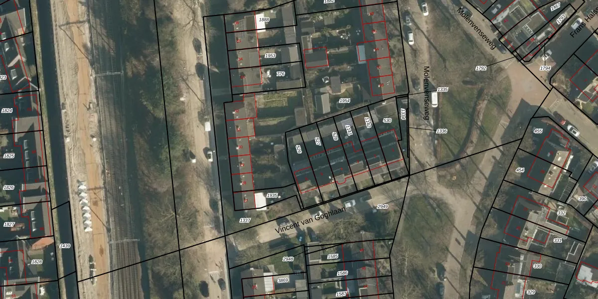 Gebruik de zoekbalk of klik op een perceel om informatie over het perceel te bekijken.