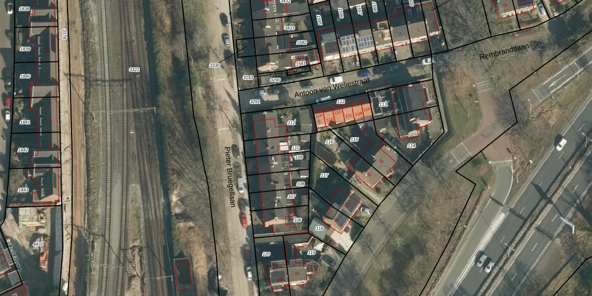 Gebruik de zoekbalk of klik op een perceel om informatie over het perceel te bekijken.