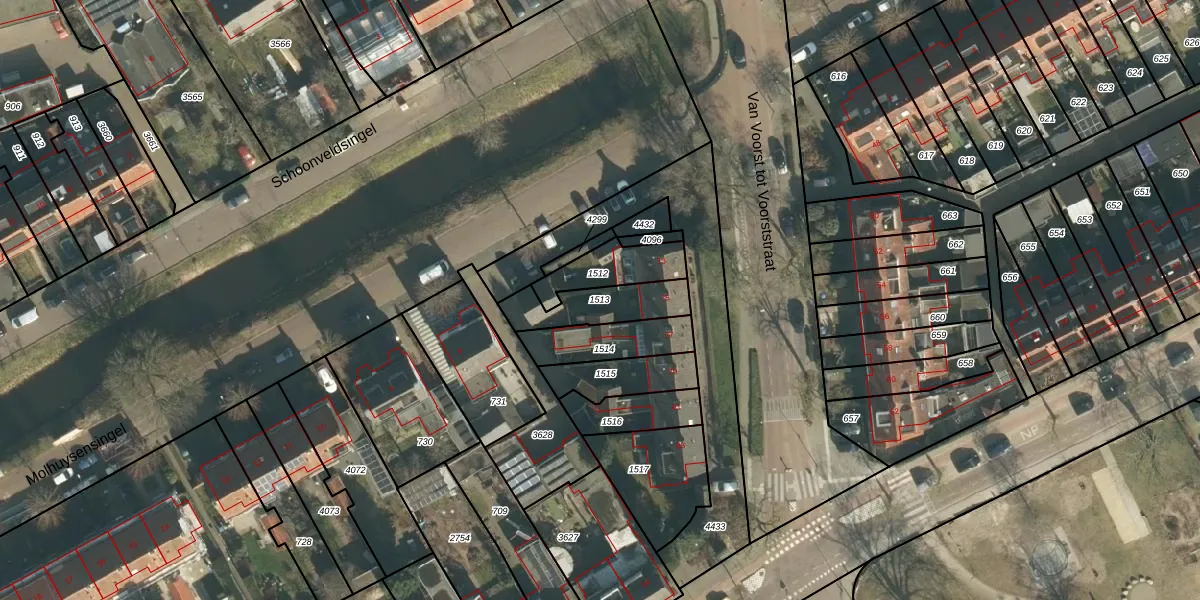 Gebruik de zoekbalk of klik op een perceel om informatie over het perceel te bekijken.