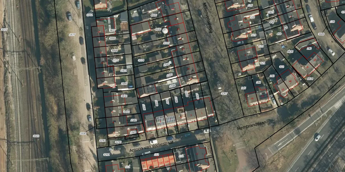 Gebruik de zoekbalk of klik op een perceel om informatie over het perceel te bekijken.