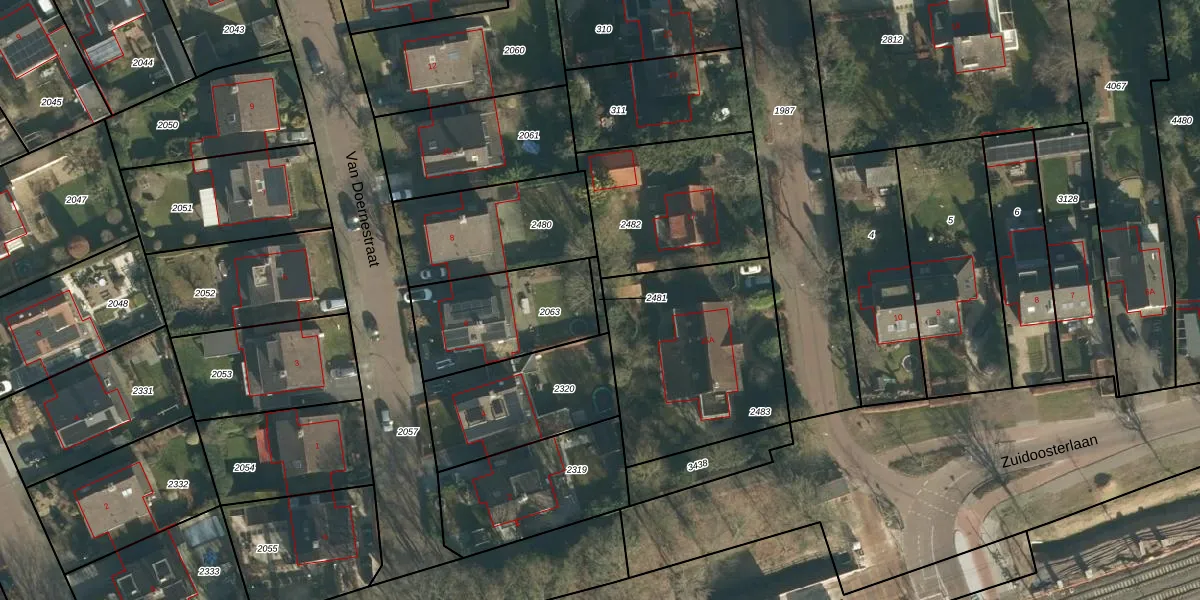 Gebruik de zoekbalk of klik op een perceel om informatie over het perceel te bekijken.