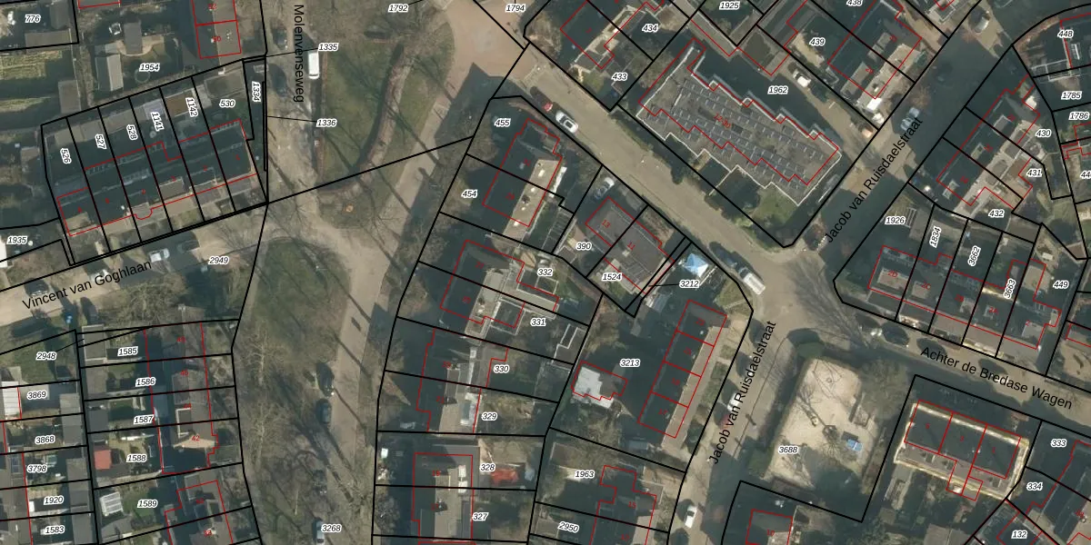Gebruik de zoekbalk of klik op een perceel om informatie over het perceel te bekijken.