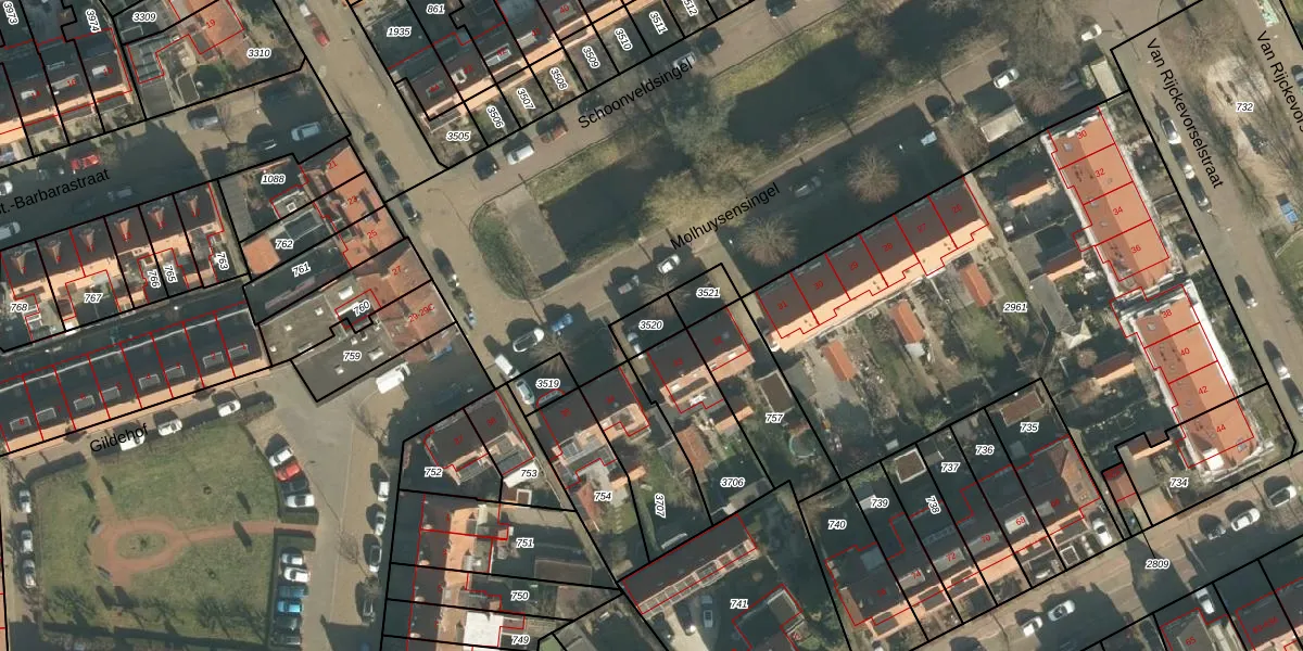 Gebruik de zoekbalk of klik op een perceel om informatie over het perceel te bekijken.