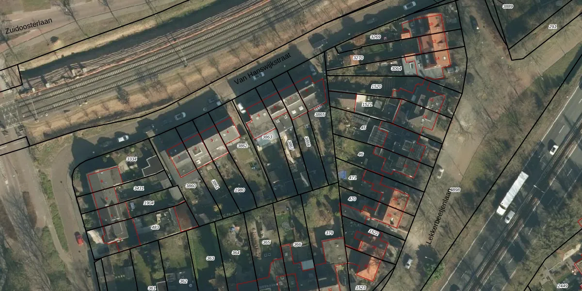 Gebruik de zoekbalk of klik op een perceel om informatie over het perceel te bekijken.