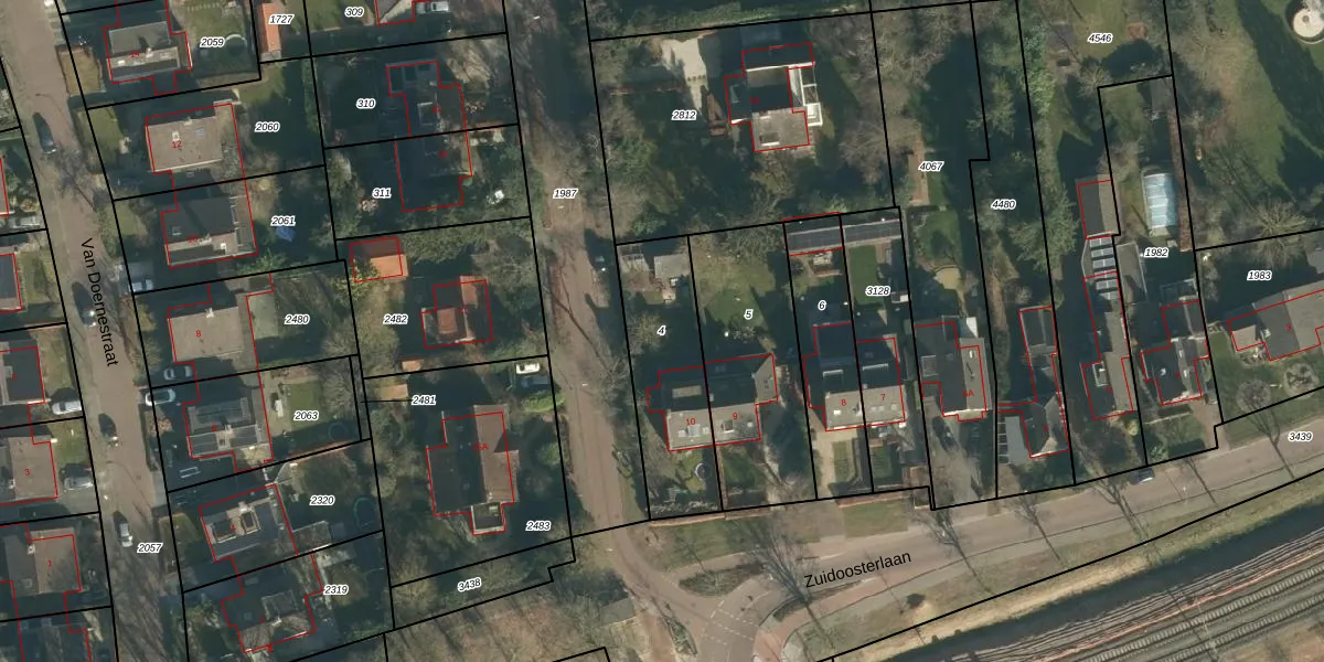 Gebruik de zoekbalk of klik op een perceel om informatie over het perceel te bekijken.