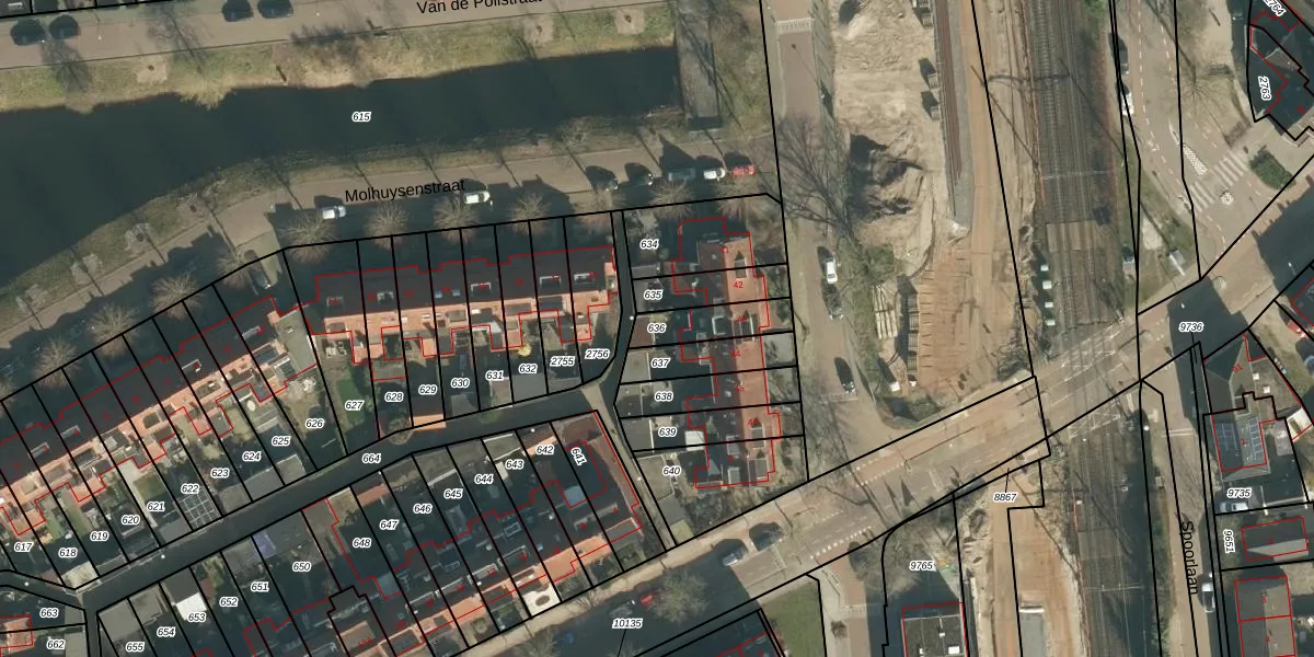 Gebruik de zoekbalk of klik op een perceel om informatie over het perceel te bekijken.