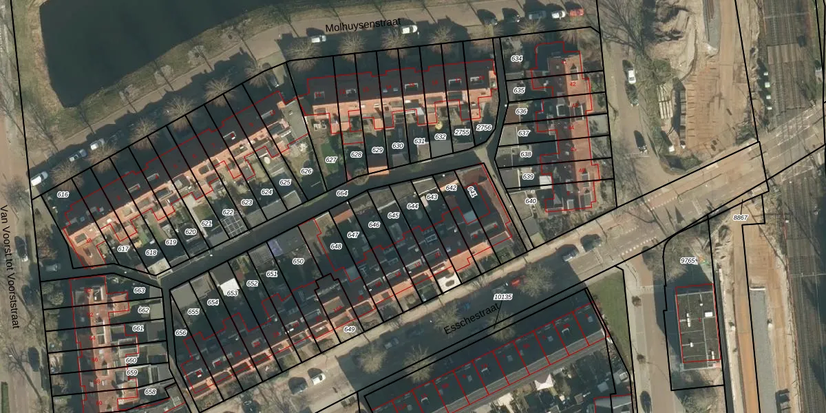 Gebruik de zoekbalk of klik op een perceel om informatie over het perceel te bekijken.