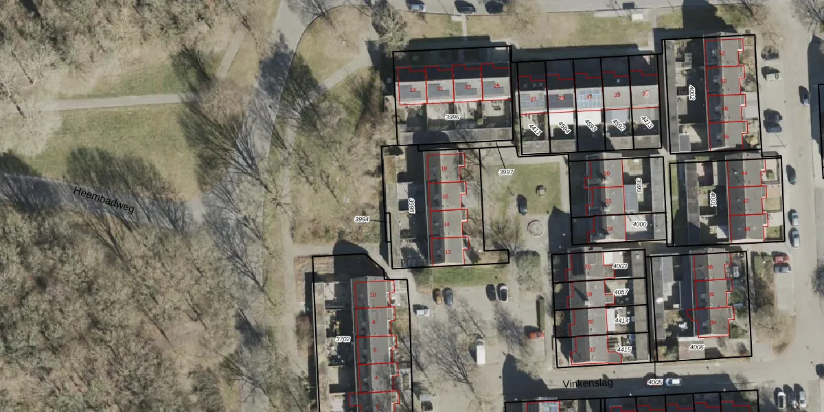 Gebruik de zoekbalk of klik op een perceel om informatie over het perceel te bekijken.