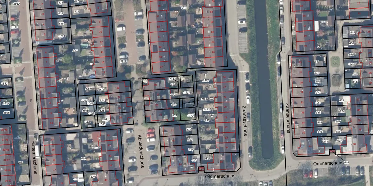 Gebruik de zoekbalk of klik op een perceel om informatie over het perceel te bekijken.