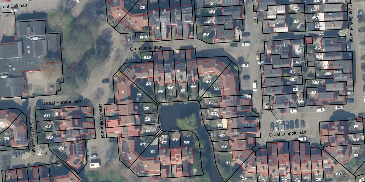 Gebruik de zoekbalk of klik op een perceel om informatie over het perceel te bekijken.