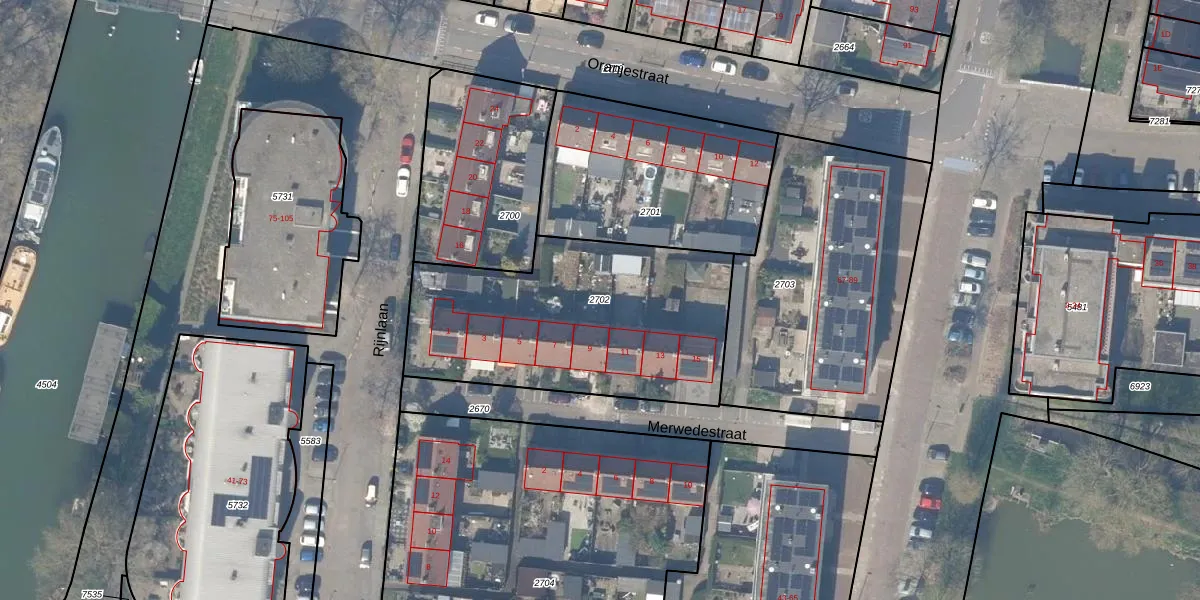 Gebruik de zoekbalk of klik op een perceel om informatie over het perceel te bekijken.