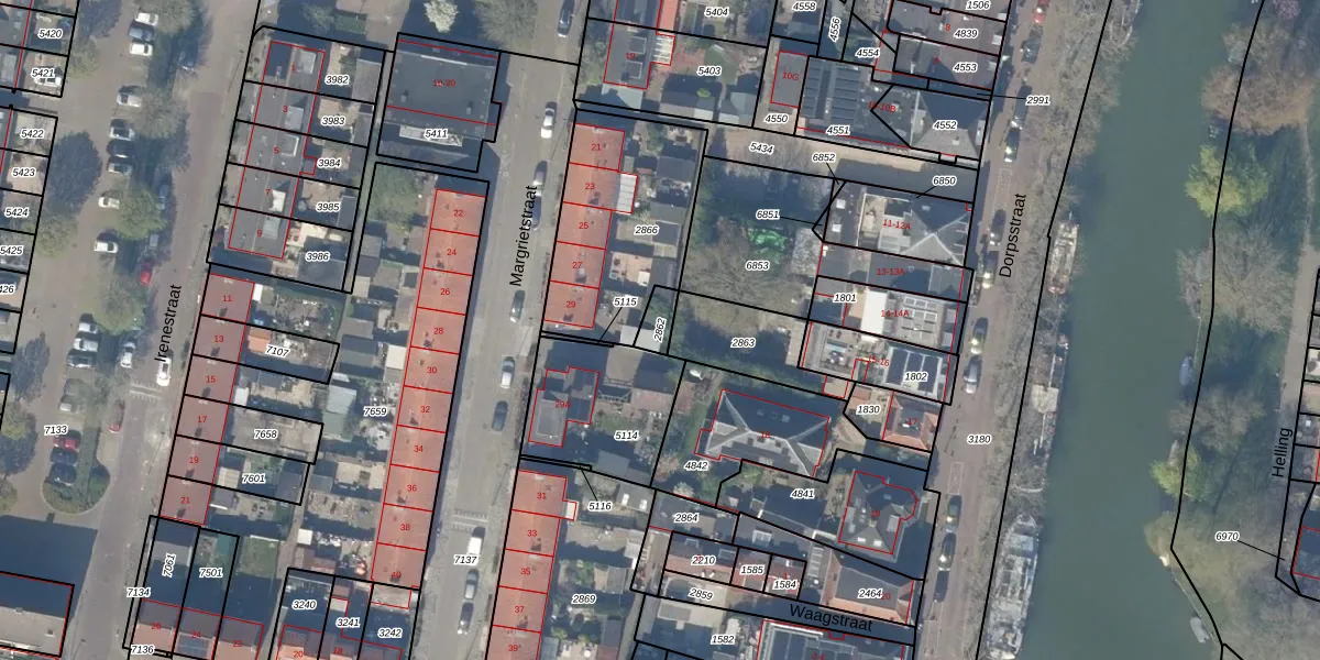 Gebruik de zoekbalk of klik op een perceel om informatie over het perceel te bekijken.