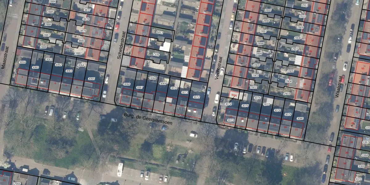 Gebruik de zoekbalk of klik op een perceel om informatie over het perceel te bekijken.
