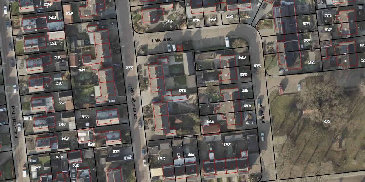Gebruik de zoekbalk of klik op een perceel om informatie over het perceel te bekijken.