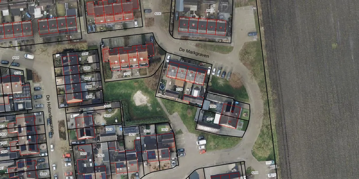 Gebruik de zoekbalk of klik op een perceel om informatie over het perceel te bekijken.