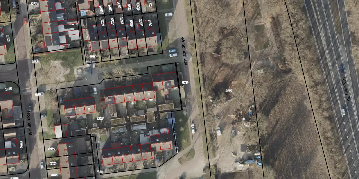 Gebruik de zoekbalk of klik op een perceel om informatie over het perceel te bekijken.