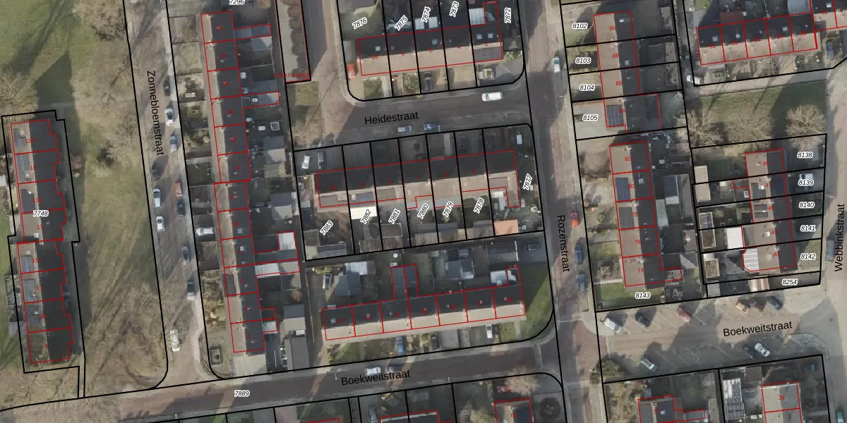 Gebruik de zoekbalk of klik op een perceel om informatie over het perceel te bekijken.
