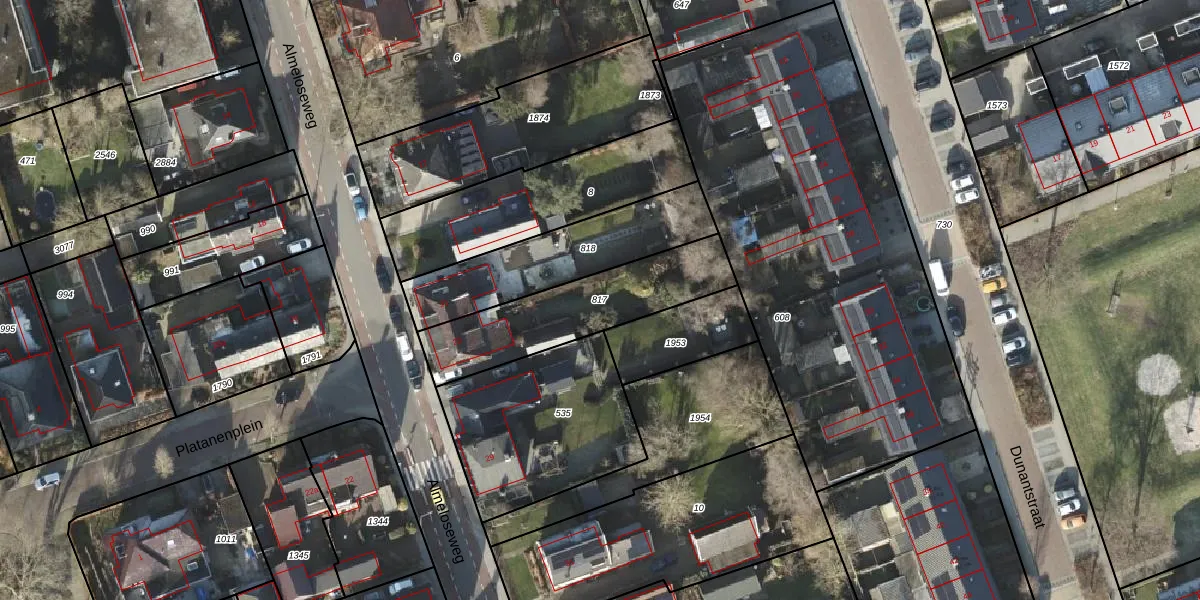 Gebruik de zoekbalk of klik op een perceel om informatie over het perceel te bekijken.