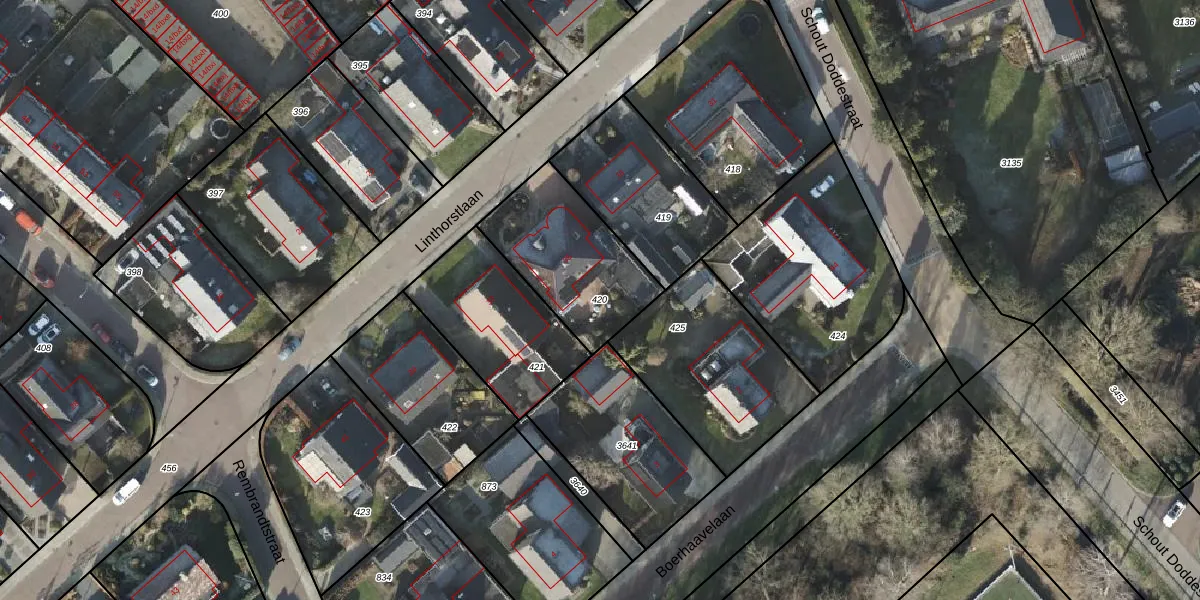 Gebruik de zoekbalk of klik op een perceel om informatie over het perceel te bekijken.