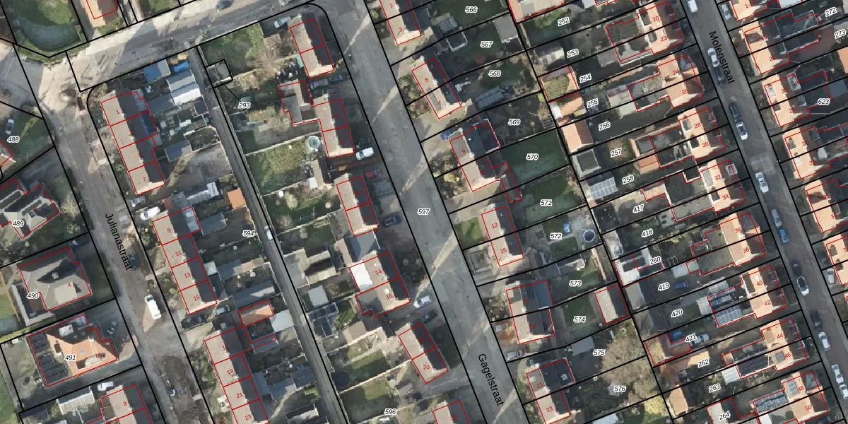 Gebruik de zoekbalk of klik op een perceel om informatie over het perceel te bekijken.