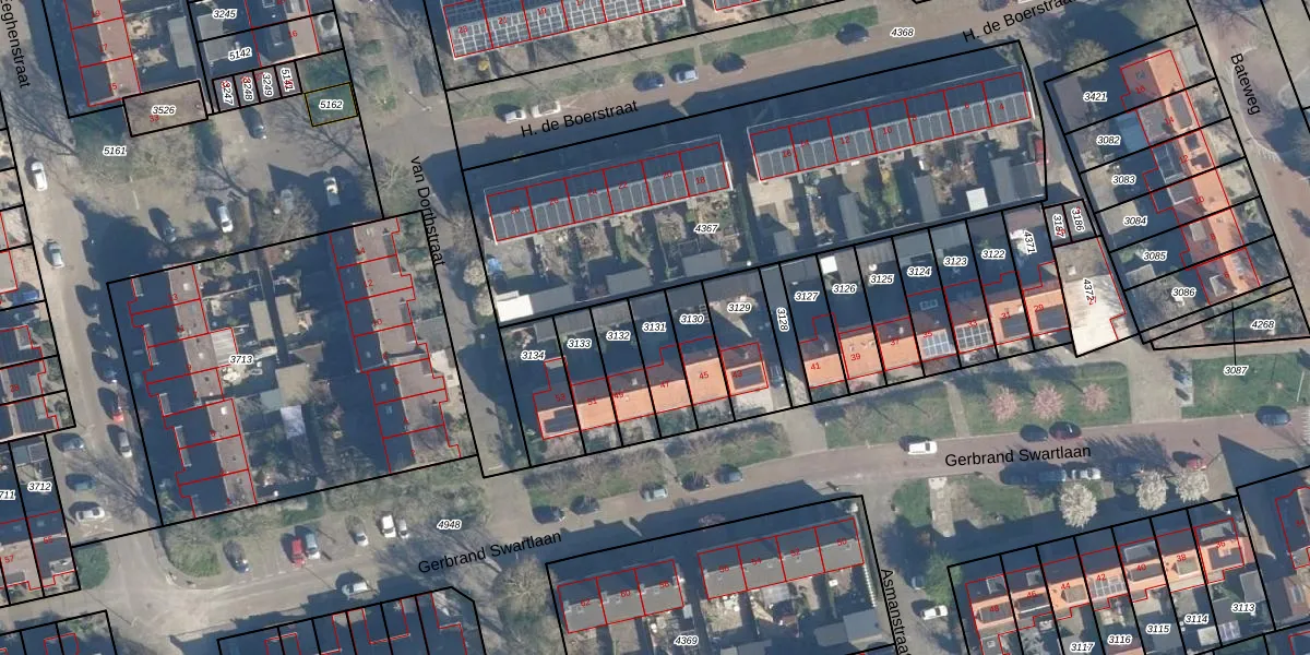 Gebruik de zoekbalk of klik op een perceel om informatie over het perceel te bekijken.