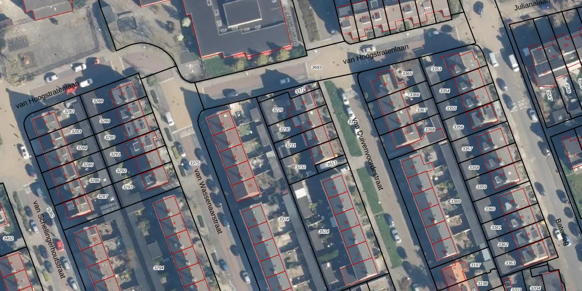 Gebruik de zoekbalk of klik op een perceel om informatie over het perceel te bekijken.