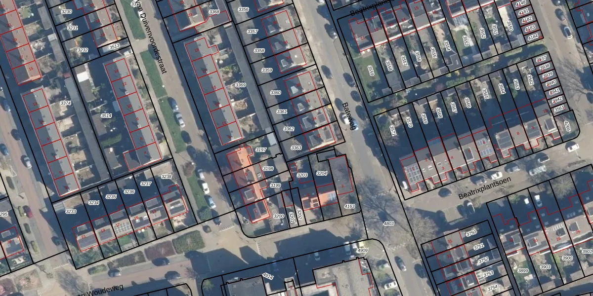 Gebruik de zoekbalk of klik op een perceel om informatie over het perceel te bekijken.