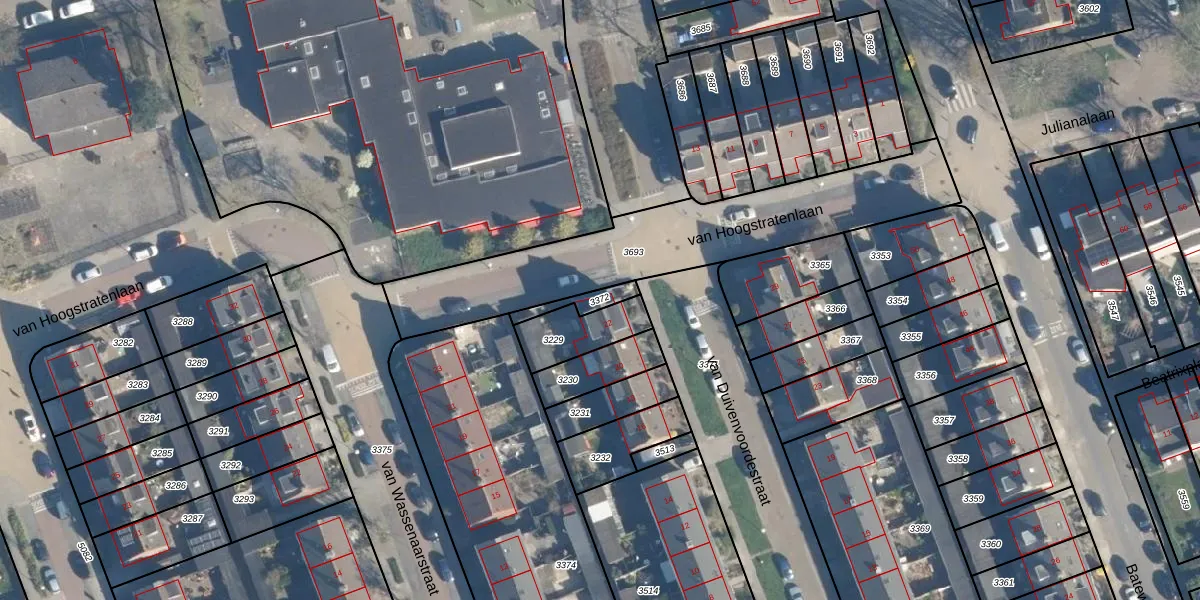 Gebruik de zoekbalk of klik op een perceel om informatie over het perceel te bekijken.