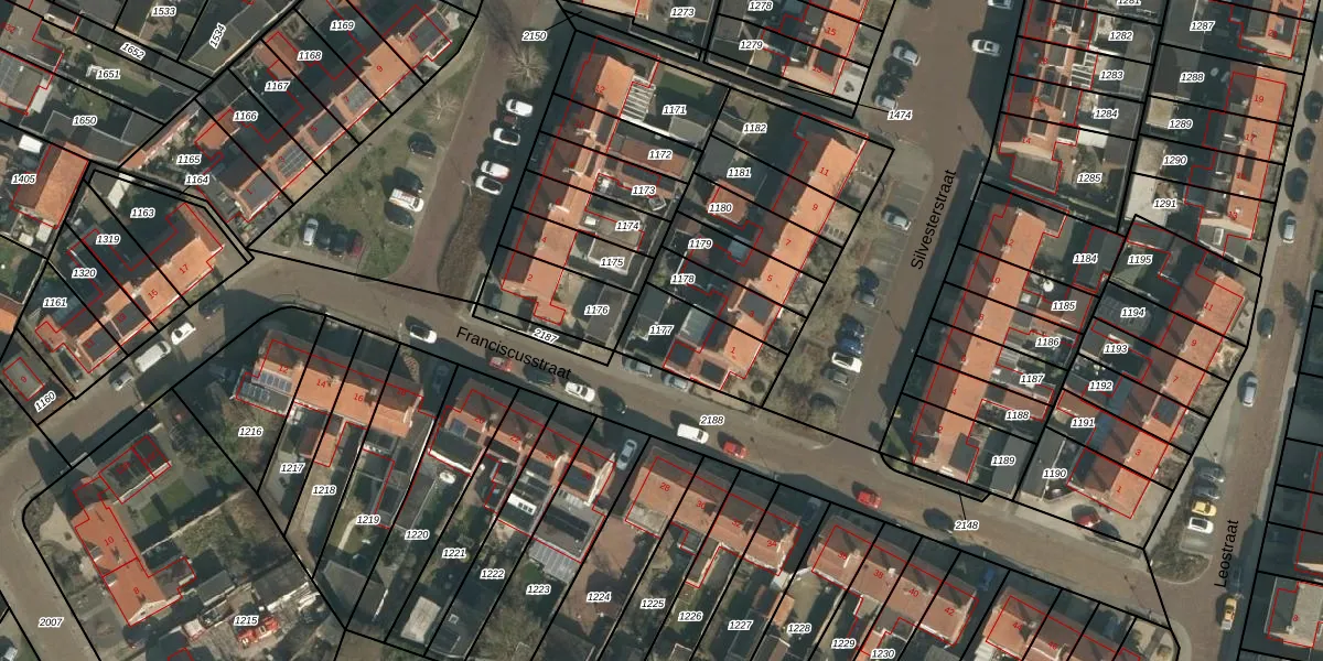 Gebruik de zoekbalk of klik op een perceel om informatie over het perceel te bekijken.