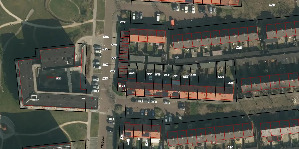Gebruik de zoekbalk of klik op een perceel om informatie over het perceel te bekijken.