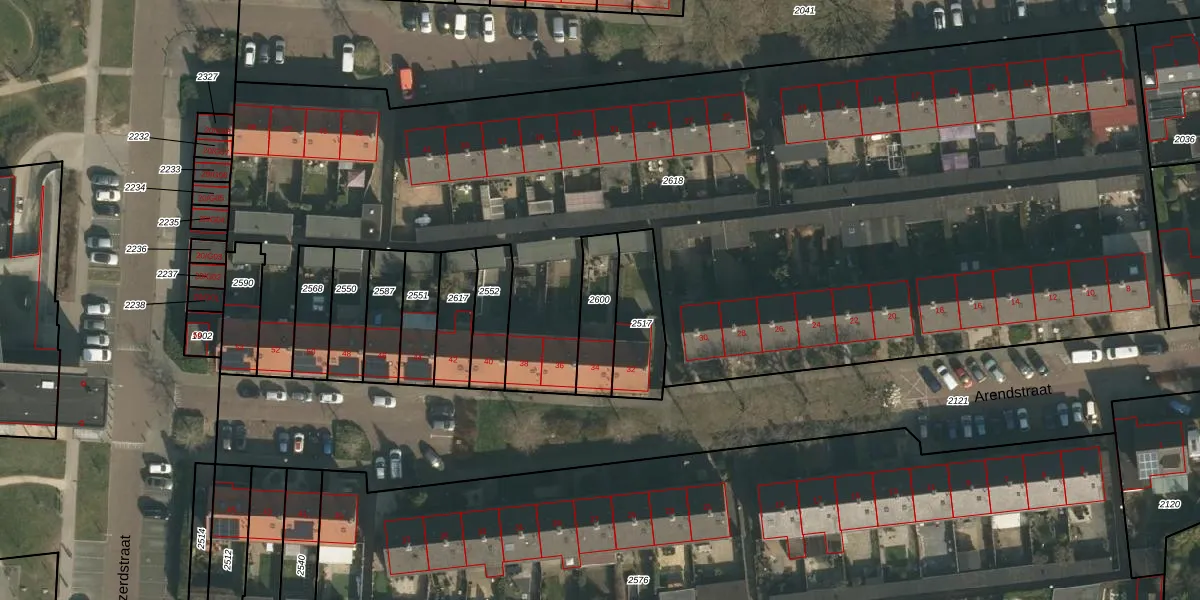 Gebruik de zoekbalk of klik op een perceel om informatie over het perceel te bekijken.
