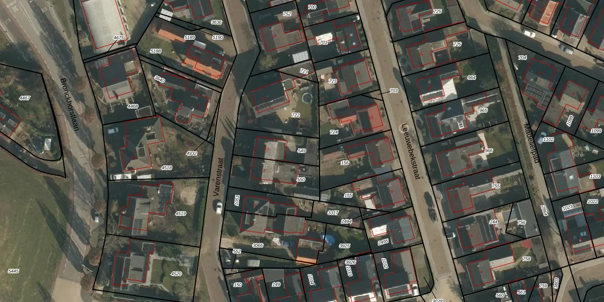 Gebruik de zoekbalk of klik op een perceel om informatie over het perceel te bekijken.