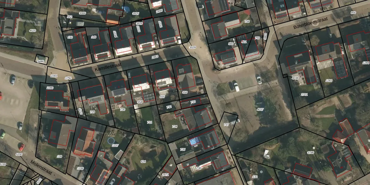 Gebruik de zoekbalk of klik op een perceel om informatie over het perceel te bekijken.