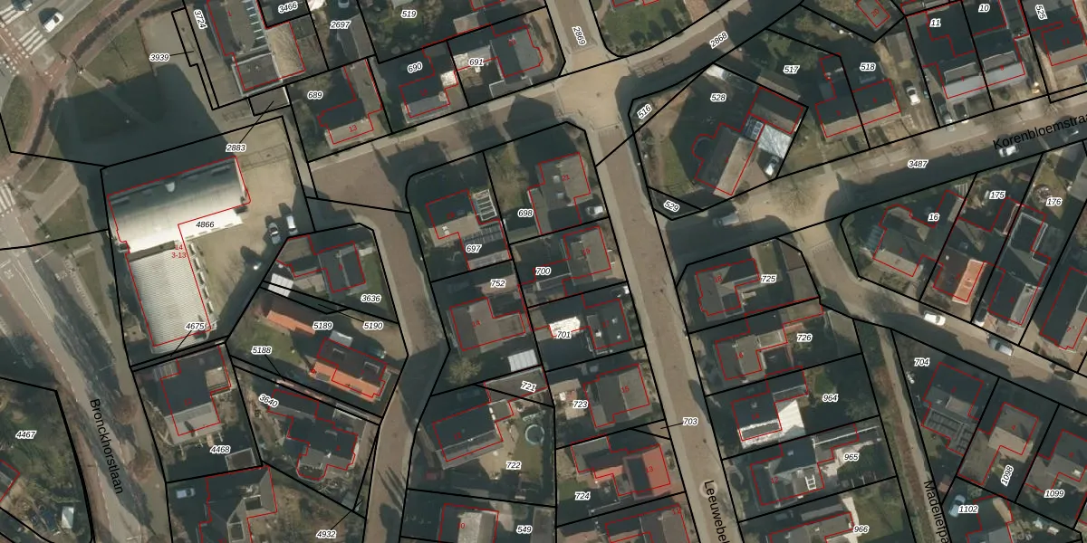 Gebruik de zoekbalk of klik op een perceel om informatie over het perceel te bekijken.