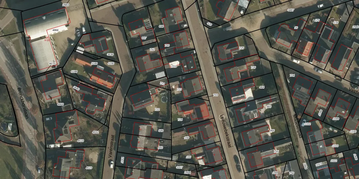 Gebruik de zoekbalk of klik op een perceel om informatie over het perceel te bekijken.