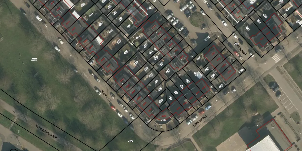 Gebruik de zoekbalk of klik op een perceel om informatie over het perceel te bekijken.