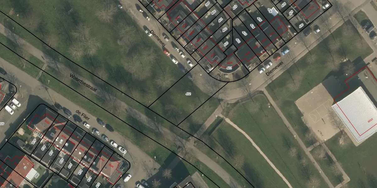 Gebruik de zoekbalk of klik op een perceel om informatie over het perceel te bekijken.
