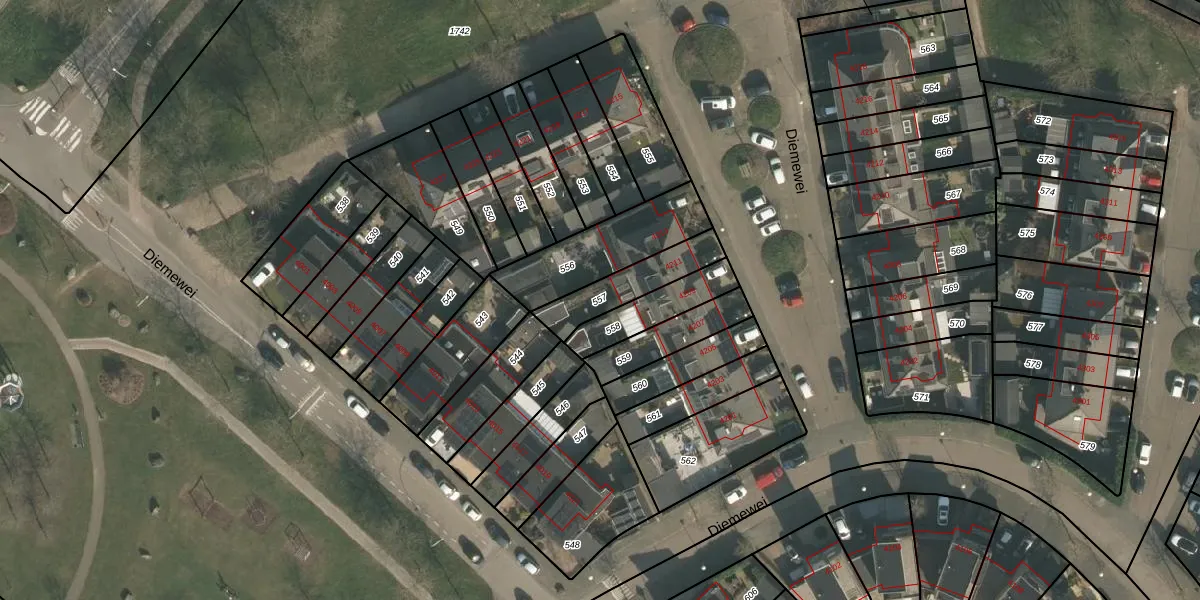 Gebruik de zoekbalk of klik op een perceel om informatie over het perceel te bekijken.