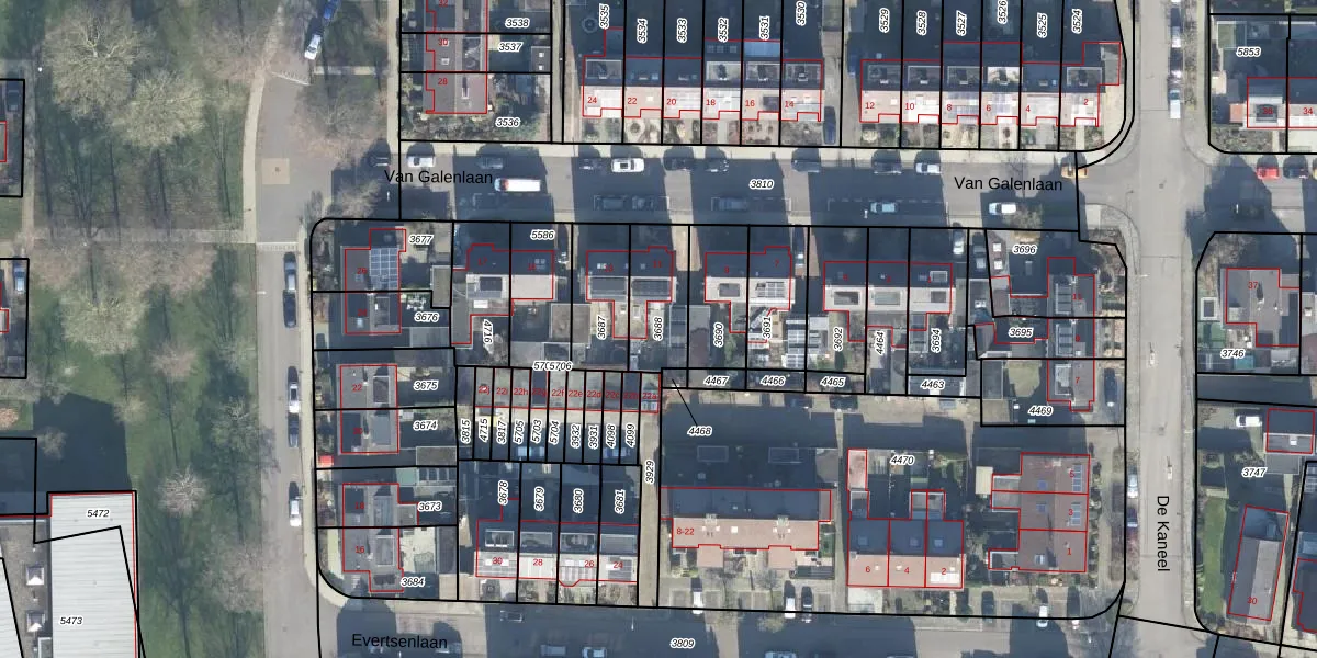 Gebruik de zoekbalk of klik op een perceel om informatie over het perceel te bekijken.