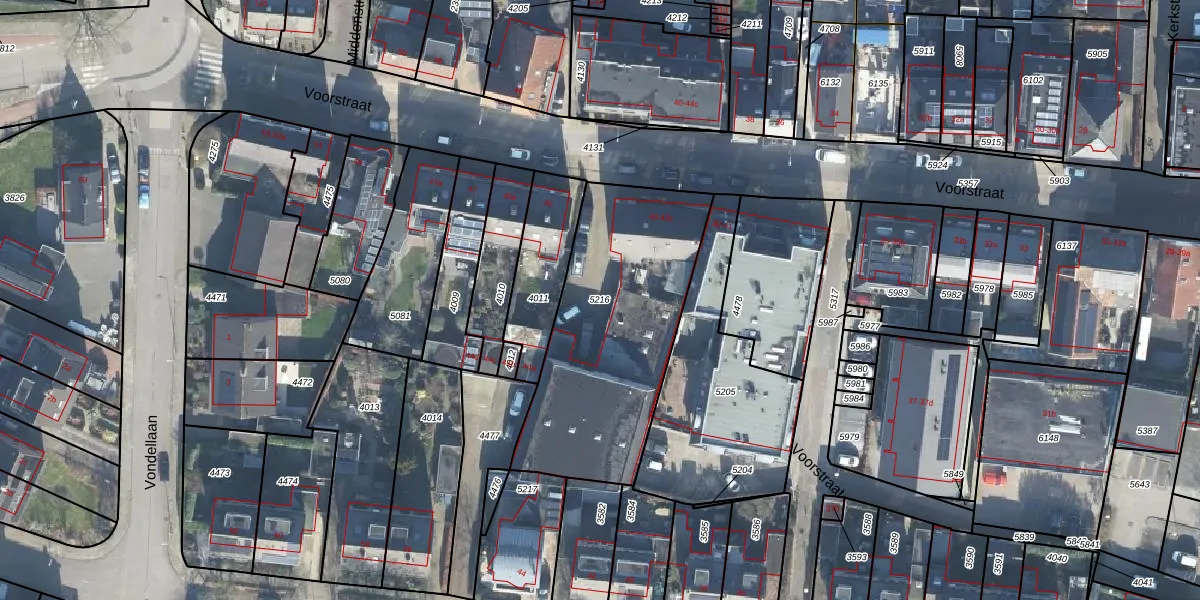 Gebruik de zoekbalk of klik op een perceel om informatie over het perceel te bekijken.