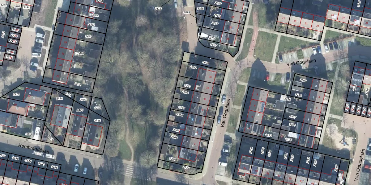 Gebruik de zoekbalk of klik op een perceel om informatie over het perceel te bekijken.