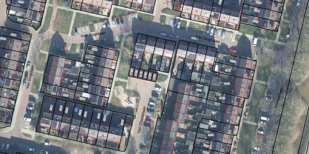 Gebruik de zoekbalk of klik op een perceel om informatie over het perceel te bekijken.