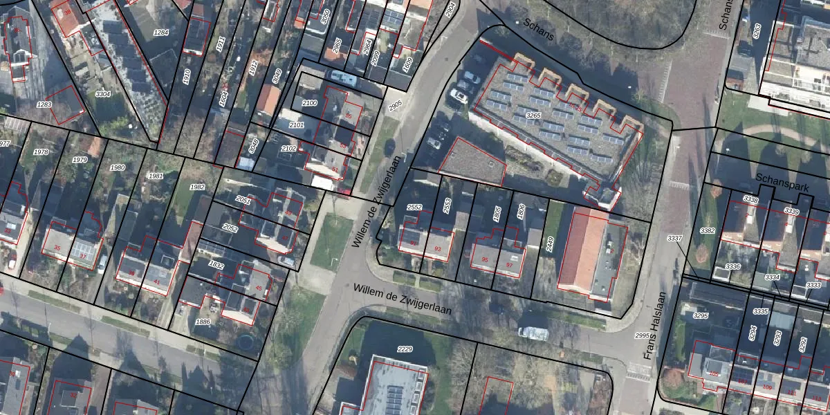 Gebruik de zoekbalk of klik op een perceel om informatie over het perceel te bekijken.