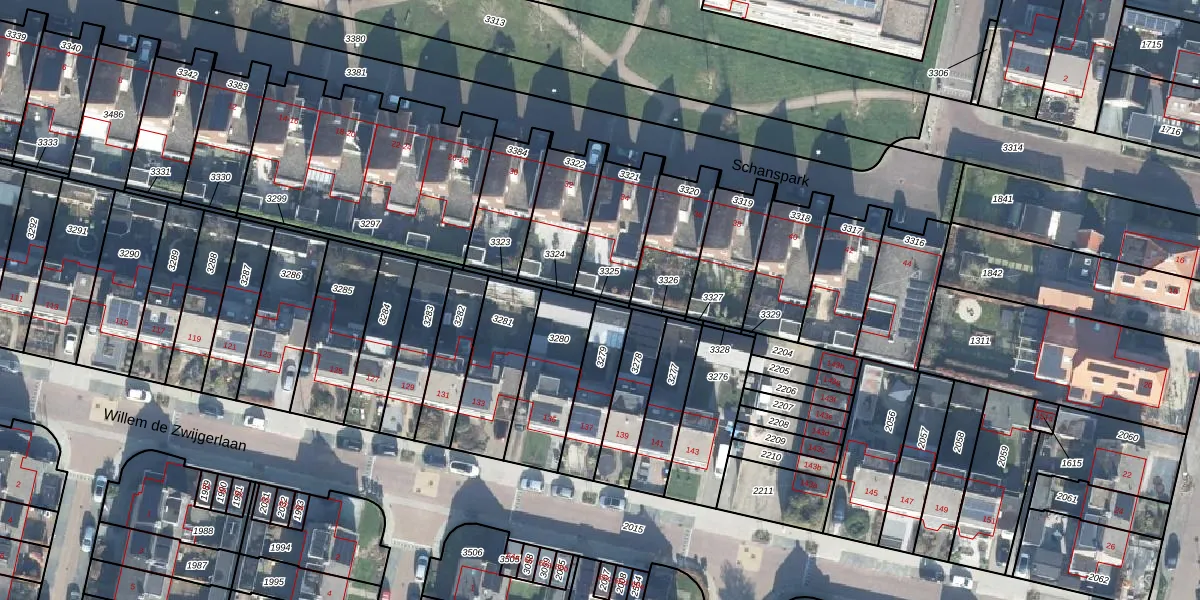 Gebruik de zoekbalk of klik op een perceel om informatie over het perceel te bekijken.