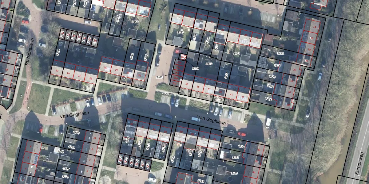 Gebruik de zoekbalk of klik op een perceel om informatie over het perceel te bekijken.