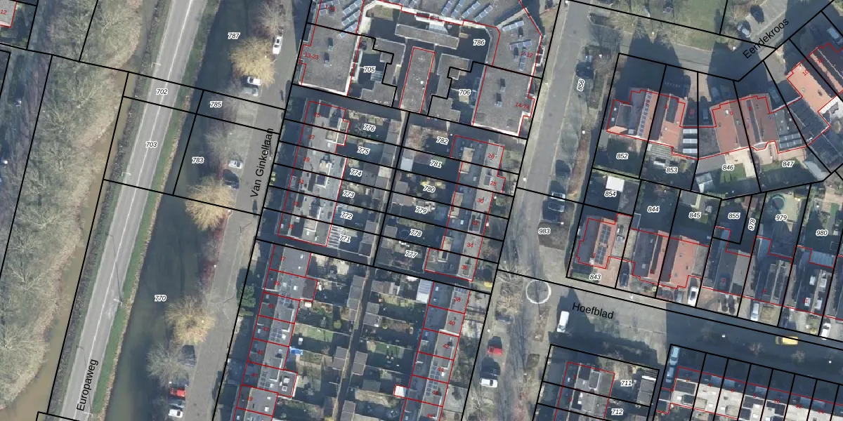 Gebruik de zoekbalk of klik op een perceel om informatie over het perceel te bekijken.