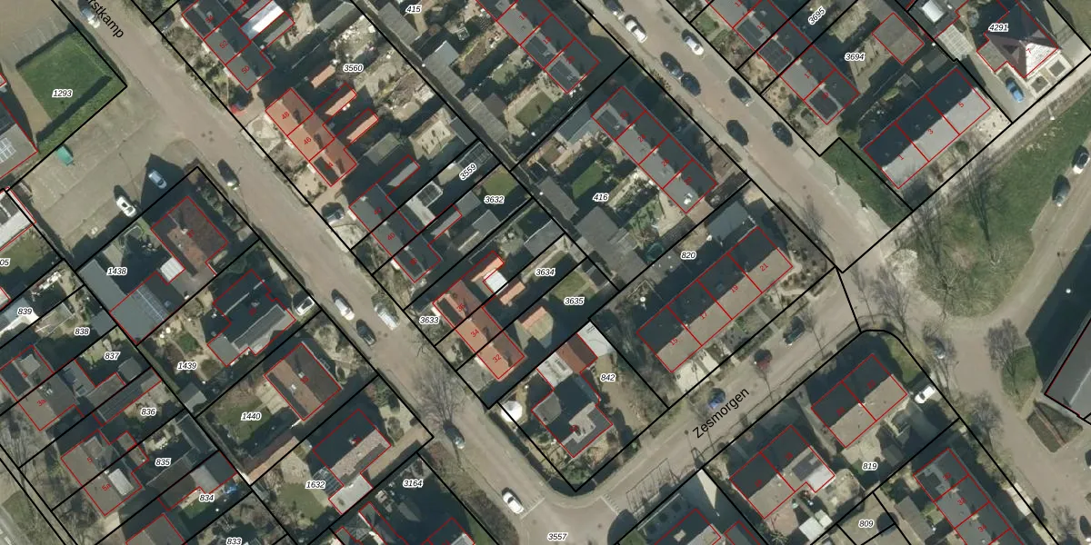Gebruik de zoekbalk of klik op een perceel om informatie over het perceel te bekijken.