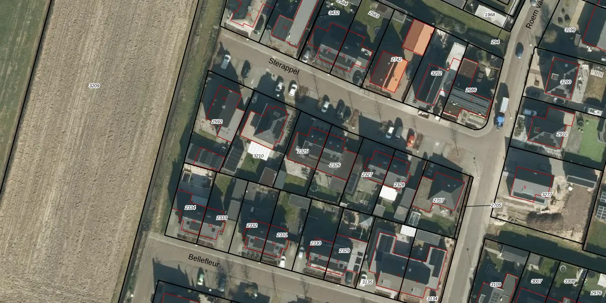 Gebruik de zoekbalk of klik op een perceel om informatie over het perceel te bekijken.