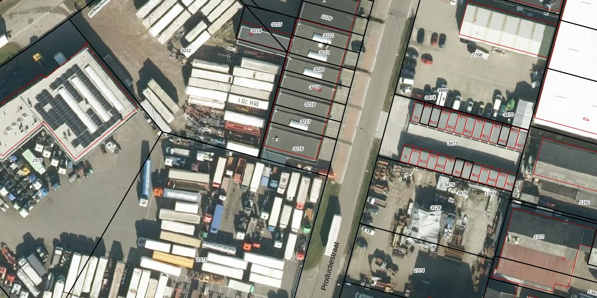 Gebruik de zoekbalk of klik op een perceel om informatie over het perceel te bekijken.