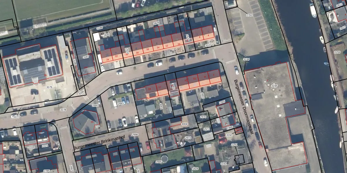 Gebruik de zoekbalk of klik op een perceel om informatie over het perceel te bekijken.
